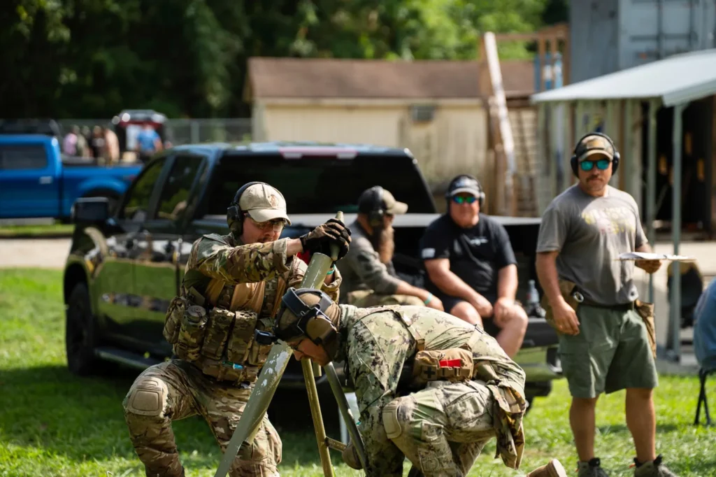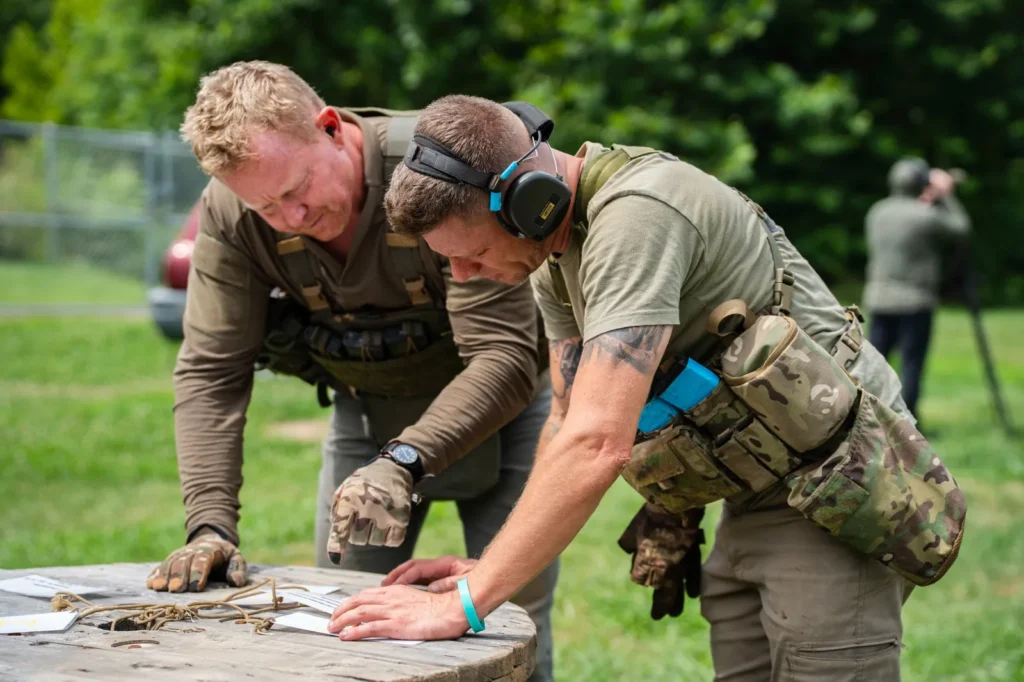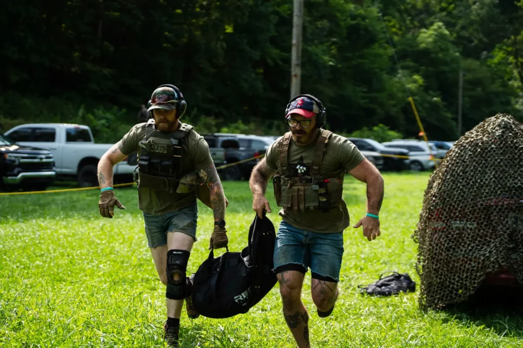 The Team Ruck match is a two-man team competition designed to challenge shooters while developing practical skills. Participants may compete traditionally or enter the Skill Builder Division if their goal is to learn and practice new skills. Throughout the match, shooters will utilize or be introduced to skills such as map reading, foreign weapons handling, room clearing, combat casualty care, and other applicable tasks. Teams will cover approximately 3.5 miles of ground across three or four ruck legs and compete in six shooting stages (approximately 30 rounds each), all designed to build teamwork and problem-solving under pressure.